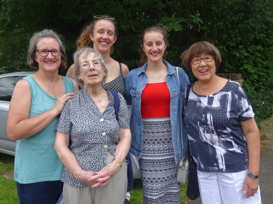 Sun 30 Jun 19: Sylvia Sharplin second left with her daughter (first left) two granddaughters and Juni (right)
