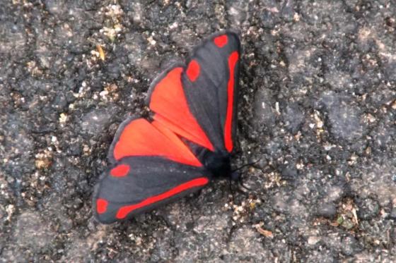 A Cinnabar moth enjoying the sun