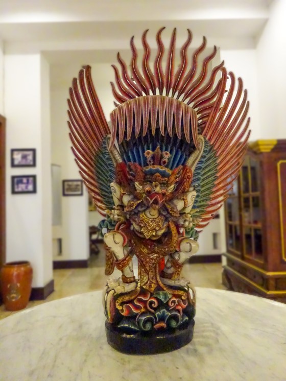 Wed 1 Jan 20: the national emblem of Indonesia in the lobby of the Kresna Hotel in Wosonobo. The bird…