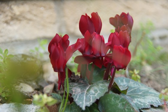 Sun 31 Mar 19: a clump of mini-cyclamen. I guess we must have planted them out but I don’t recall … More