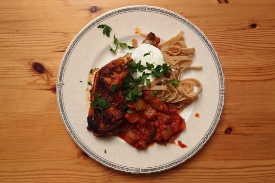 Wed 6 Mar 19: paprika chicken with wholewheat tagliatelle @waitrose. Recipe says it’s high in protein.