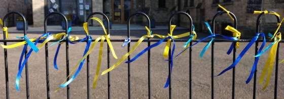 Tue 8 Mar 22: these ribbons are tied to the railings outside the Methodist Church in Histon.